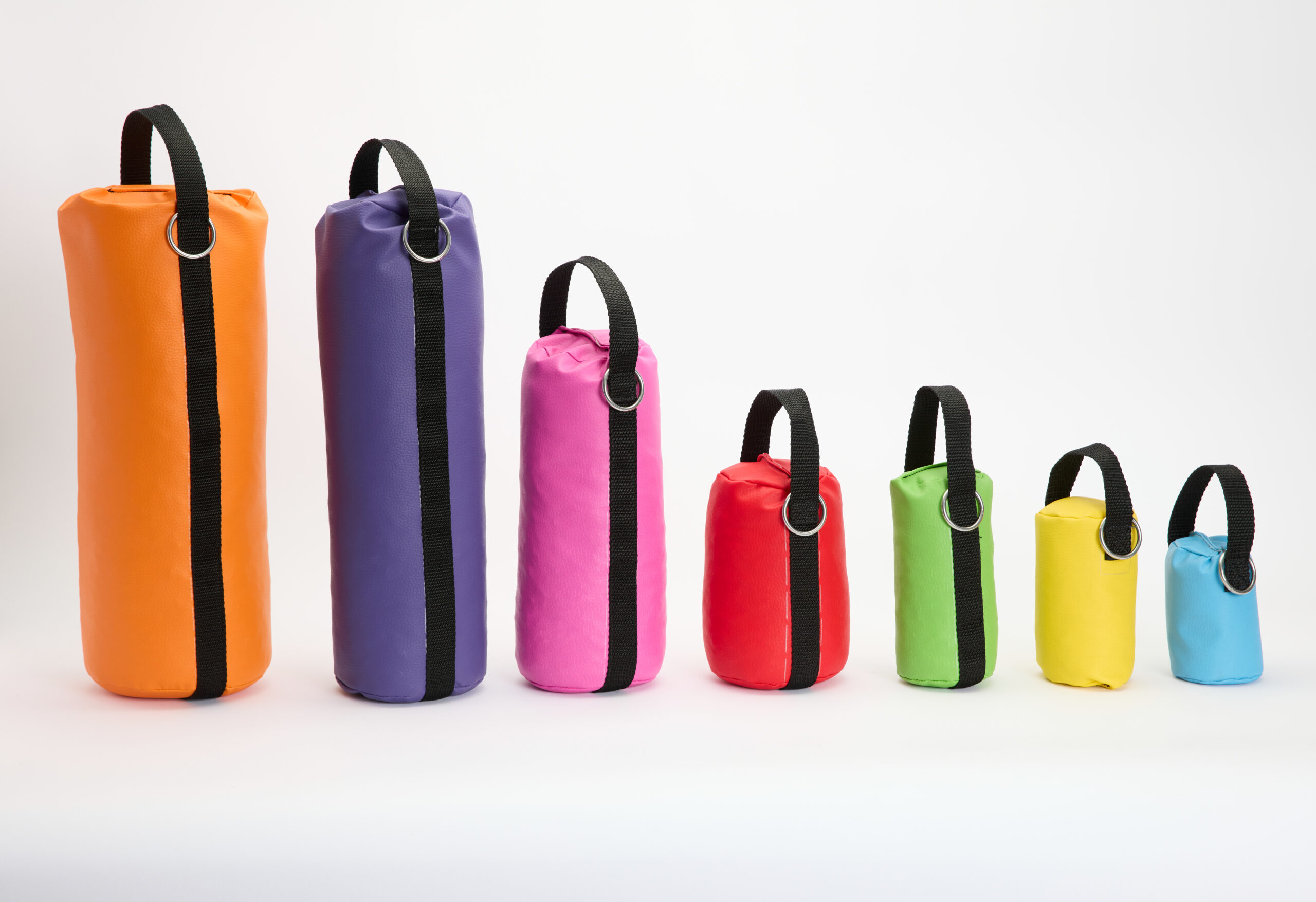 The weights are soft which protects the nursing staff and visitors from painful knocks if they are accidentally kicked or dropped. They are brightly coloured, helping to prevent accidental collisions which are painful to the patient and staff.